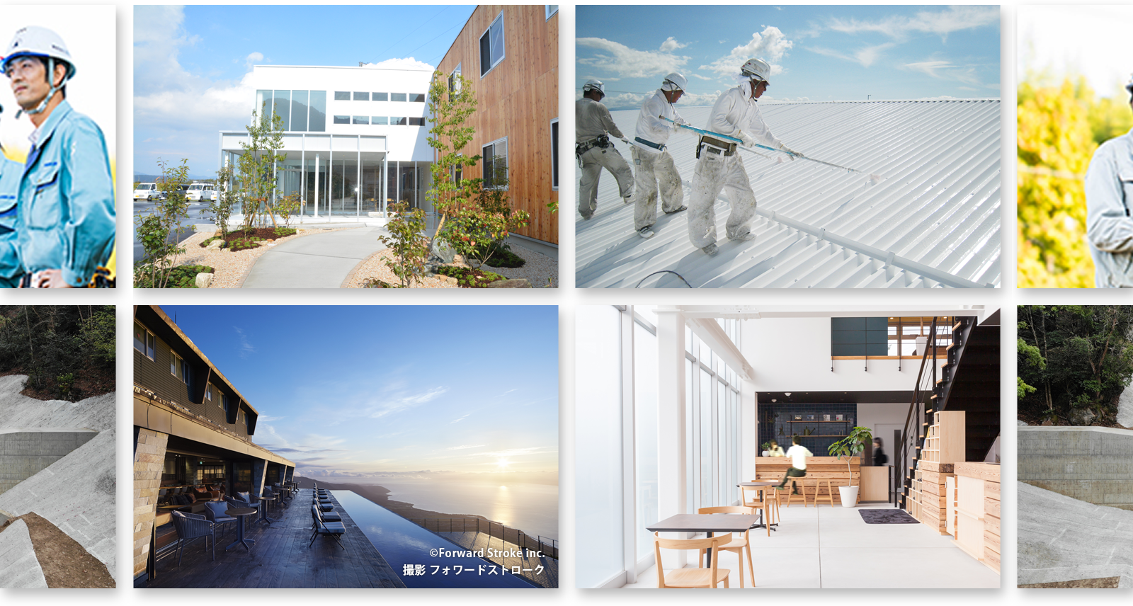 営業種目 建築一式、土木一式、大工工事、水道施設工事、とび・土工工事、造園工事、左官工事、石工事、屋根工事、タイル・れんが・ブロック工事、鋼構造物工事、鉄筋工事、舗装工事、板金工事、ガラス工事、塗装工事、防水工事、内装仕上工事、熱絶縁工事、建具工事、宅地建物取引業、建築・土木設計、土地活用
