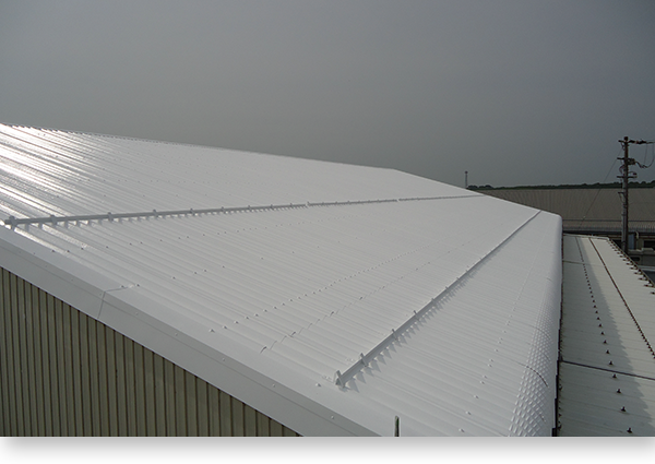 澤村では倉庫や工場の屋根に塗装することで屋根表面温度を20℃~30℃、室内温度を6℃~7℃低下させられるセラミック断熱塗料のクールサームを取り扱っております。