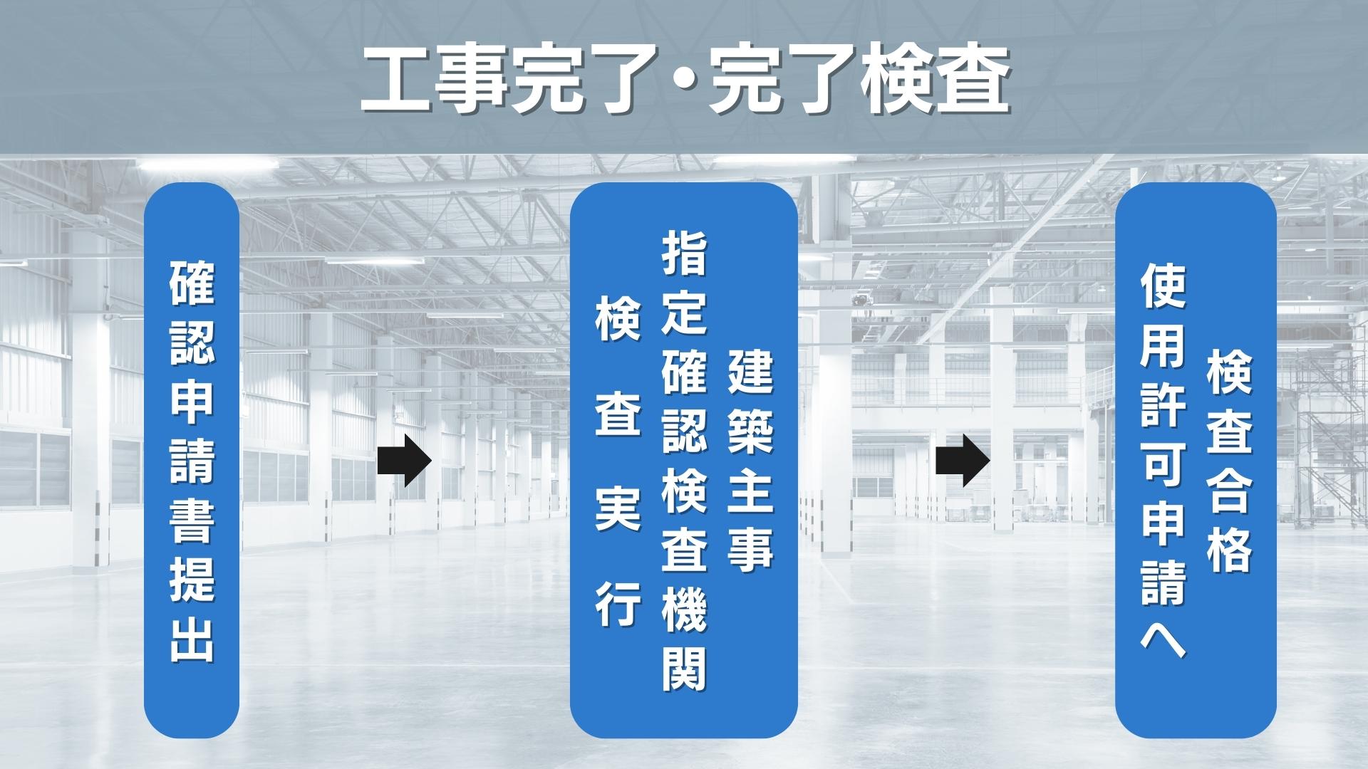 工場が完成すると「完了検査」が行われ、申請通りの施工がされていると確認できれば検査済証が交付されます。