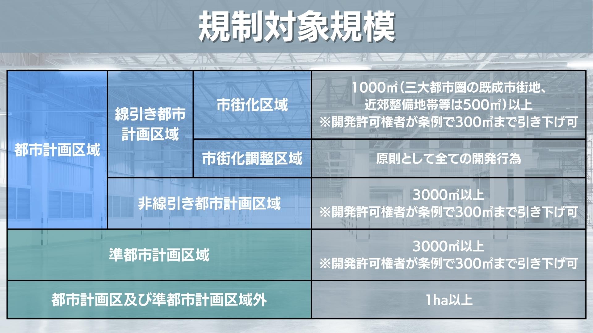 また基準が全国一律でなく地域によって判断されているものもあり、建設地の自治体との調整が欠かせません。