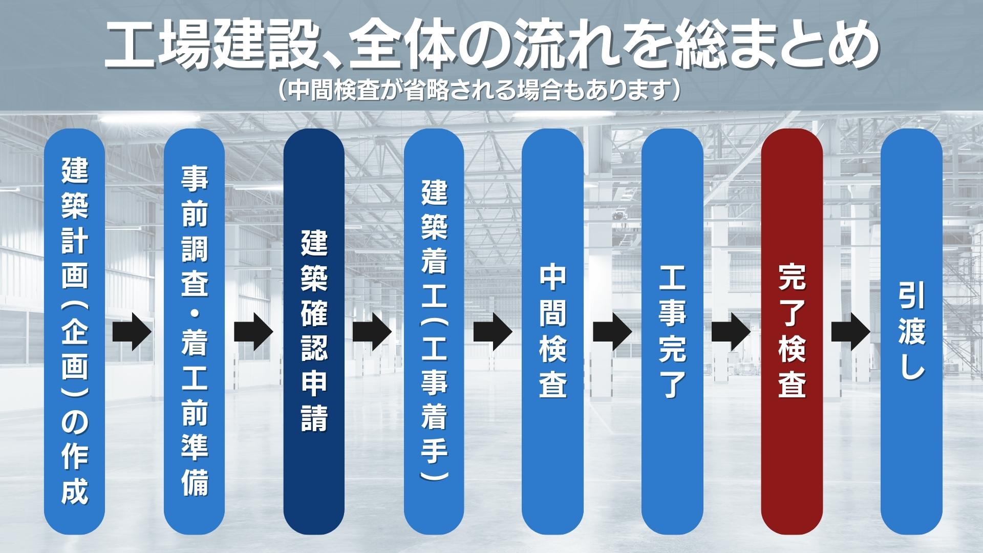 各ステップはそれぞれ重要なものであり、一つ一つを丁寧に進めることで、安全で機能的な(そして最も重要かつ一丁目一番地ともいえる「行政の検査が完了している」)工場を建設することが可能となります。