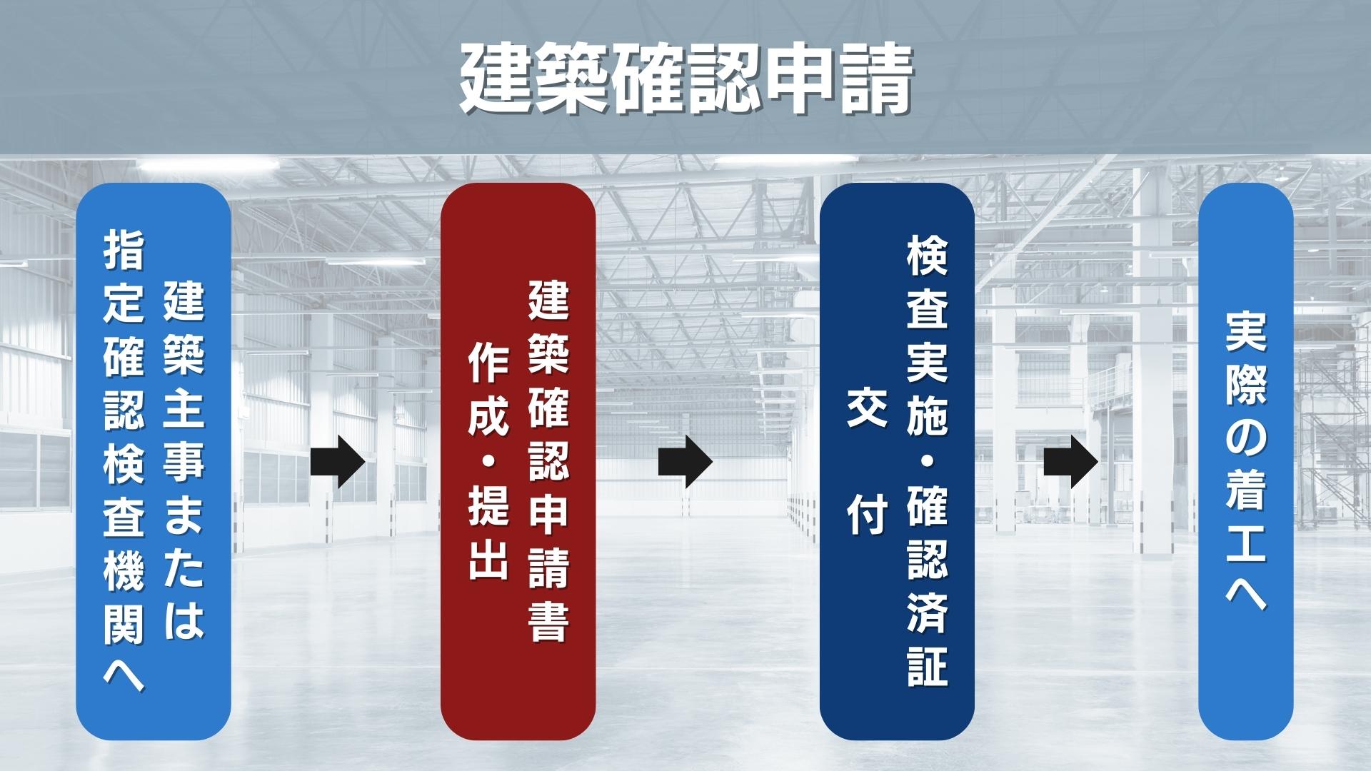 建築確認申請書を作成し、法律に基づく基準を満たしているかの審査を受けます。