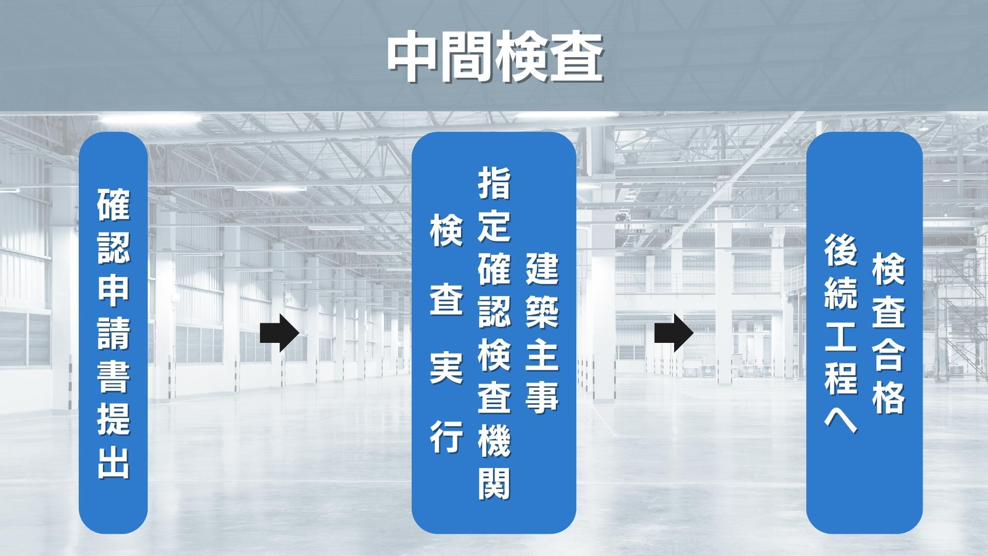 さらに、工場建設地の自治体によっては工事の途中で「中間検査」が必要です。